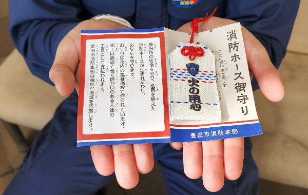 豊田市消防本部がこの度、役目を終えた消防ホースを価値のあるものとしてアップサイクルし、オリジナルの「消防ホース御守り」を製作・販売した。200個限定で残り少ないそうだ。