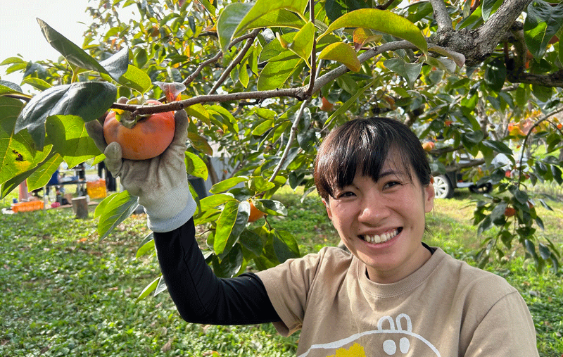 「柿は苦手と言う人が試食して『美味しい!』と言ってくれると、思いが伝わったと感じて嬉しいんです」と話す結果さん。小中学校の校外授業や調理実習にも協力し、若い世代だからできることを見つけて、みよしの柿を広めていきたいそうだ。