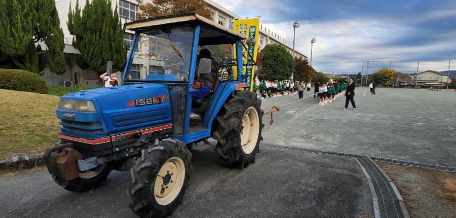 豊田市立猿投台中学校の1年生158名が9月から、菜の花栽培を通した全5回の環境学習を行っており、先月19日にはトラクターとの綱引きも行った。講師を務めたのはNPO法人豊田・加茂菜の花プロジェクト会長の梅谷明子さん(51・花丘町)だ。