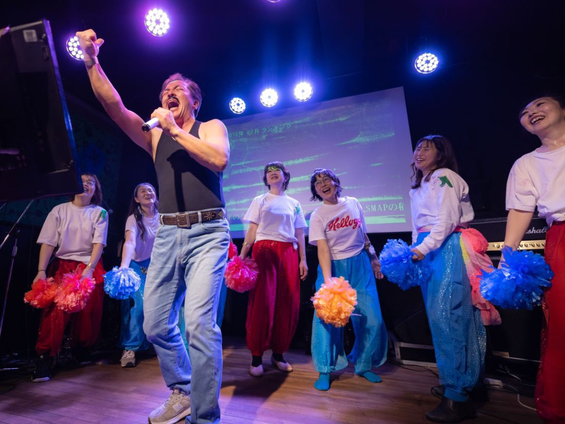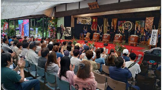 当日の会場は昭和感のある懐かしい雰囲気。地元のプロ和太鼓奏者・青木さんの迫力ある演奏で開幕し、日が暮れるまでバンド演奏で盛り上がった。