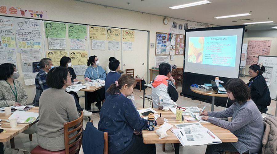 講演のあと、参加者たちはふるさとや子どもの頃の記憶を書き出してグループごとにシェアし、絵屏風づくりのプロセスも体験していた。企画した矢作川研究所の吉橋久美子さんは、「矢作川も地域の人から愛されている川なので、この地域に上田先生をお招きできて嬉しいです」と話していた。【地域記者 戸田育代】