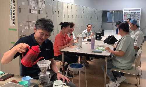 焙煎の後はコーヒーミルで豆を引いて淹れ方をレクチャー。自分たちで焙煎した2種類のコーヒーを飲み比べた。鈴木さんが「同じ豆でも煎り方によって全く違う味になりますよ」と伝えると、参加者から「全部のグループの珈琲を飲み比べてみたい」という意見も出ていた。