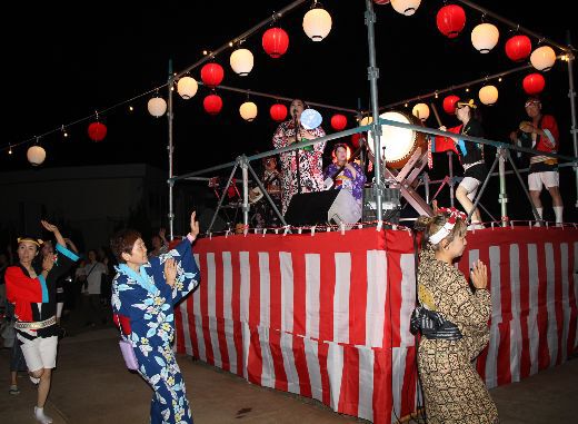 日が暮れてからいよいよ本番の盆踊り。櫓の上には地元の太鼓と、民謡・三味線の芳泉会があがって生演奏し、人気の「河内おとこ節」も生唄でしっとりと素敵な盆踊りになった。矢野さんは「地元の若い子たちが一緒にやってくれたら嬉しいですね」と早くも来年のことを考えていた。【新見克也】