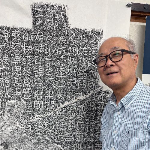 なお18日14時からはギャラリートークがあり、安藤豐邨さん、拓本愛好家の太田海軒(かいけん)さん、愛知教育大学名誉教授の風岡五城(かざおかごじょう)さん、毎日書道会理事の加藤裕さんら書道界の重鎮4人が書拓本の前でその魅力に迫る。安藤さんは自然石に文字が彫られた実物を中国で見ており、「現地で実際に見るとわくわくして創作意欲がわきます」と笑顔で話してくれた。