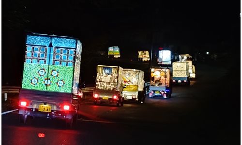 軽トラックの荷台を〝あんどん〟に仕立てて豊田市小原地区内の約42㎞を巡る「軽トラあんどんパレード」が先週末4日に開催され、里山にあかりの華を咲かせた。