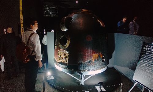 6つ目は超目玉の特別展示。実業家の前澤友作氏が2021年に日本の民間人として初めて宇宙旅行した際に搭乗したソユーズ宇宙船の帰還モジュール(実機)を間近で見られる。大気圏突入時の1万℃を超える高温で黒く焼け焦げた跡がリアルだ。意外にも小さくて狭いことや、あまり最先端技術っぽくない船内のスイッチ類など驚かされることも多い。