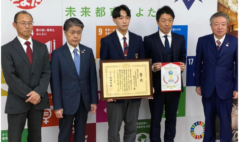 県立足助高校・観光ビジネスコースの「高校生トラベルⓇ」を核とする課題解決型の取組が、今年度の「第9回ジャパン・ツーリズム・アワード」=応募総数213件=で観光庁長官賞を受賞した。国土交通大臣賞と経済産業大臣賞に次ぐ第3位の賞で、来年度の「観光科」新設に向けて弾みとなった。先週28日には上沼善雪校長、熊﨑紀文教諭、3年生の鈴木さんの3人が太田稔彦市長を表敬訪問し受賞を報告した。