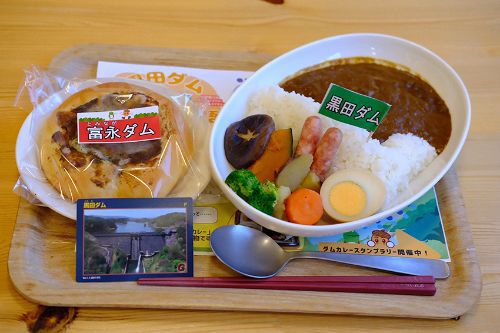 黒田ダムカレーは1日10食限定。カレー皿とカレーパンで2段式揚水発電を表現している。