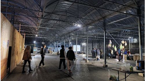 農業ビニールハウス内には若手のアート作品が空間を活かして展示され、日没後まで楽しめた。